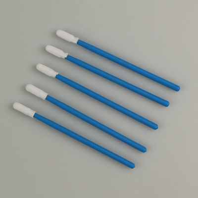 Esta esponja del poliéster está con la cabeza hecha punto doble y los 7cm PP cortos se pegan. La cabeza hecha punto doble suave puede proteger el componente delicado. Los pequeños pp rígidos se pegan pueden permitir la esponja profunda a la pequeña área y limpiar el duro alcanzar áreas. El palillo es ESD y esta esponja es sin pelusa, él es ampliamente utilizada en recinto limpio. La esponja se ata firmemente al palillo. No bajará abajo durante la limpieza.